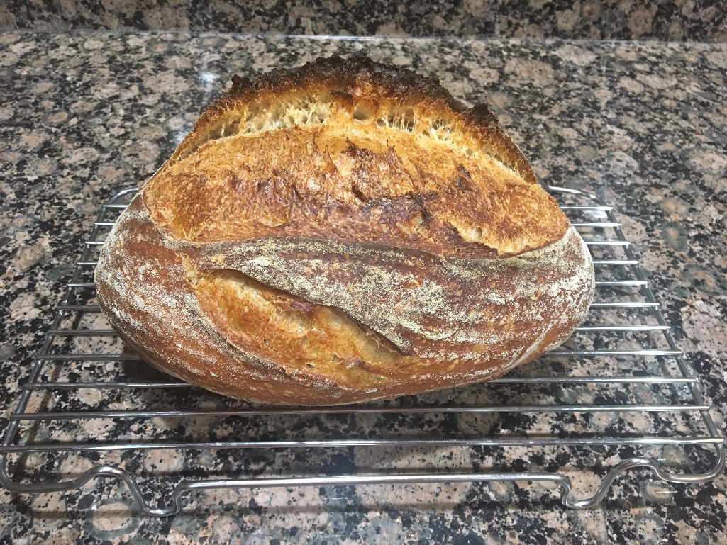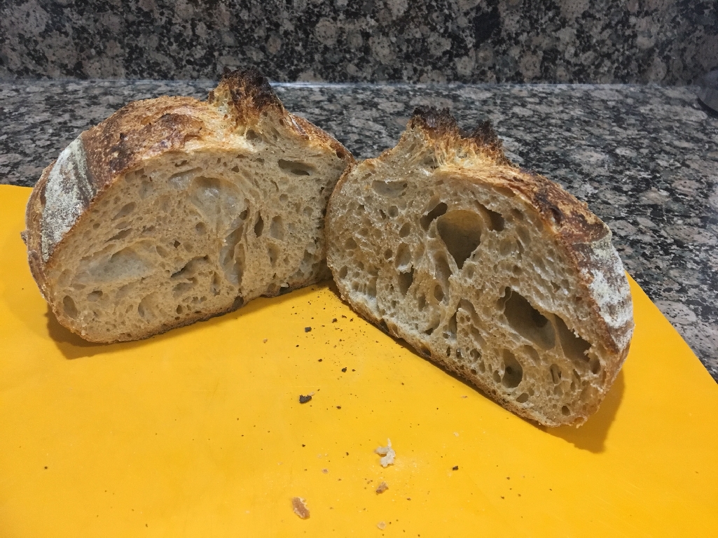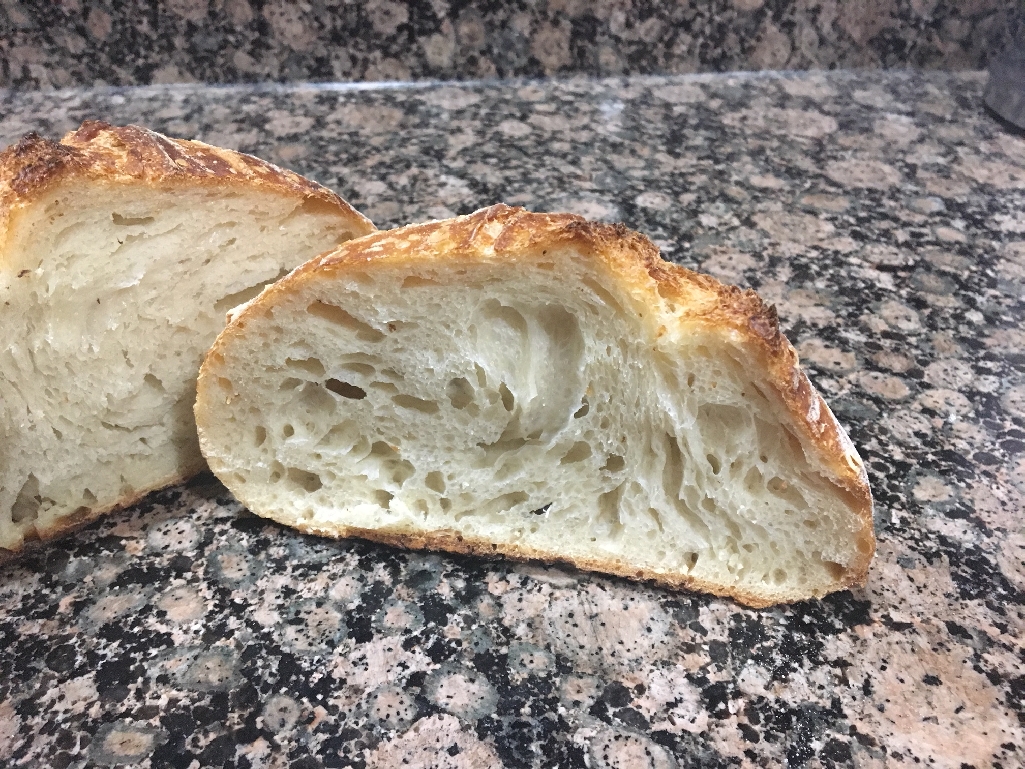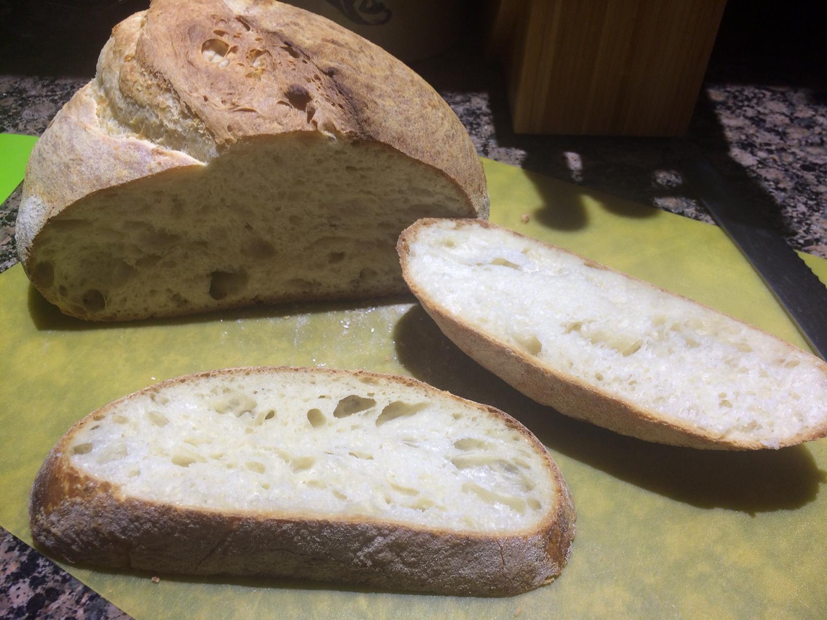 The dough was wet and spread out on he cookie sheet, looked like it was too flat. It did have a nice oven rise and turned out good. It had a spaceship shape and nice voids. The flavor was not that sour and we we would prefer a more sour flavor.