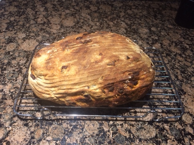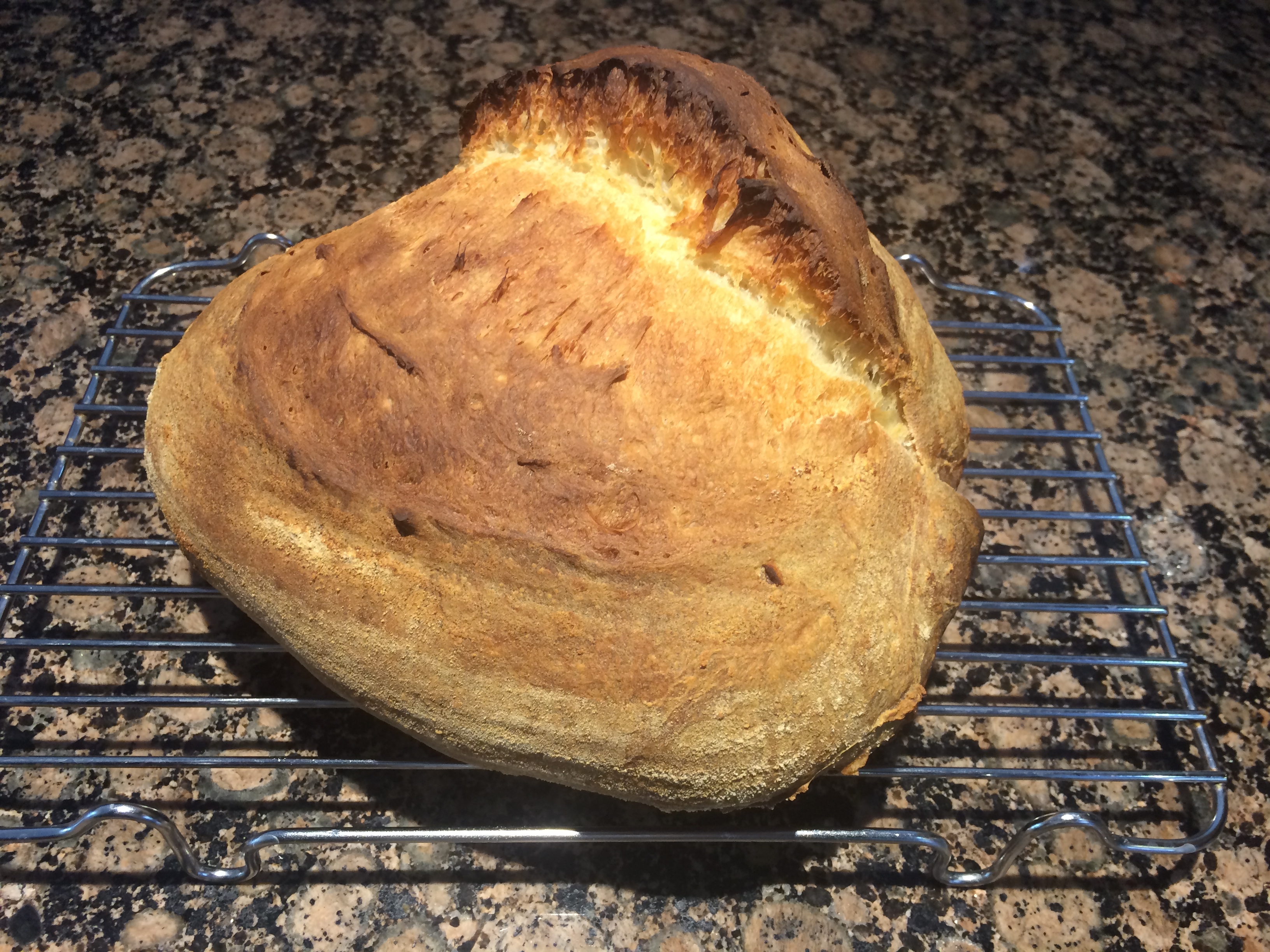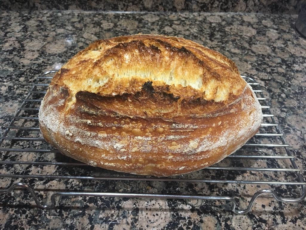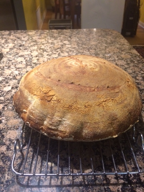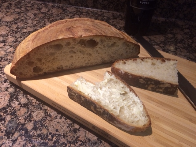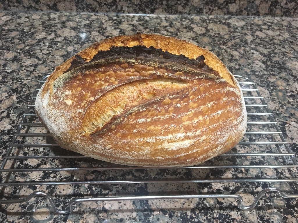 The dough was wet and spread out on he cookie sheet, looked like it was too flat. It did have a nice oven rise and turned out good. It had a spaceship shape and nice voids. The flavor was not that sour and we we would prefer a more sour flavor.