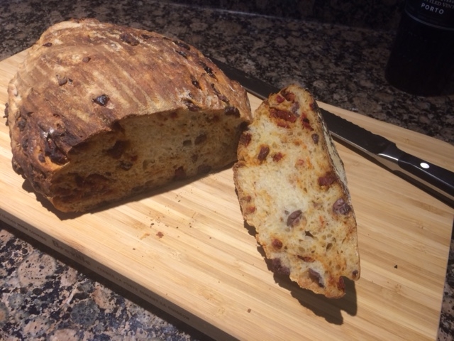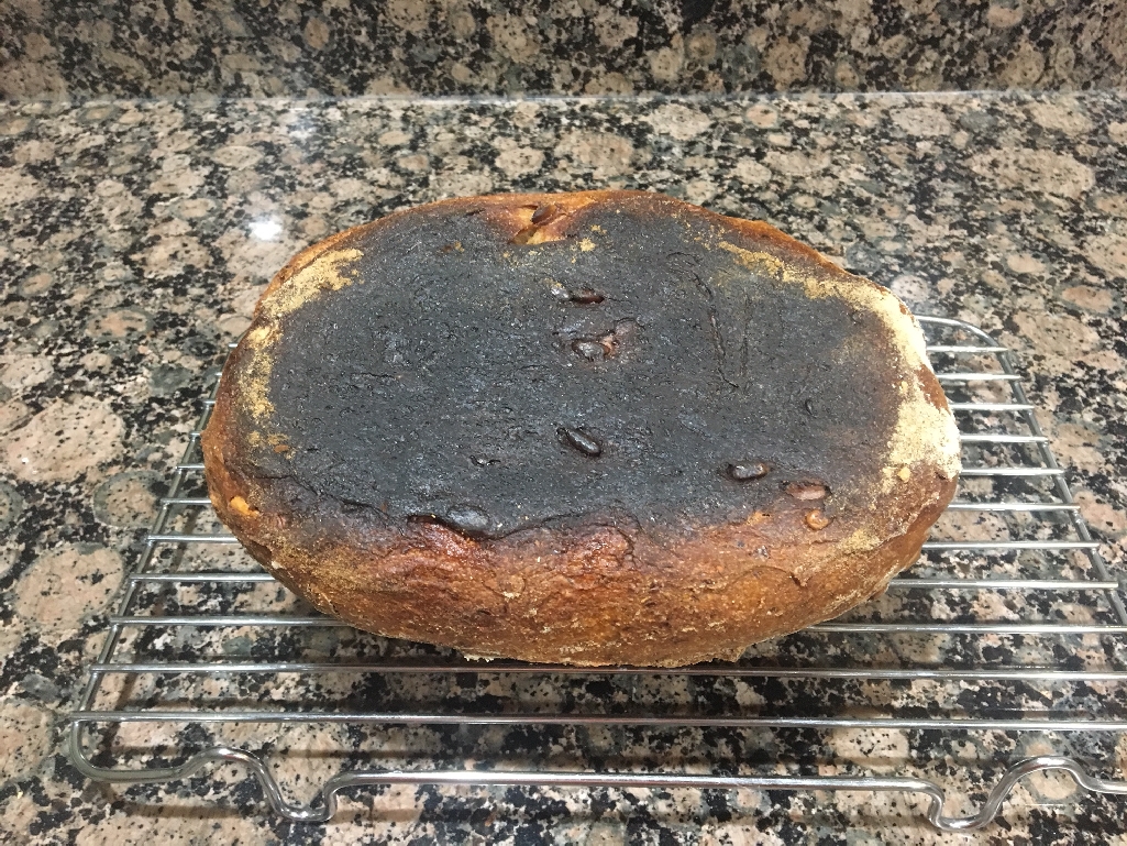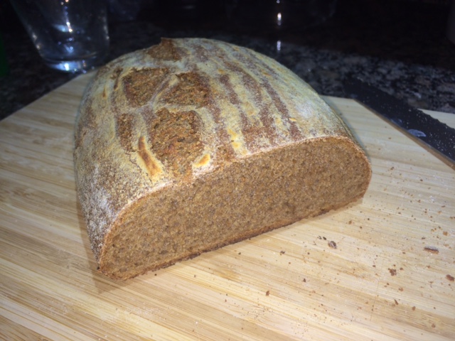 Used dark rye Did not rise, was very dense Forgot to cut it It split on it's own End up throwing it away...