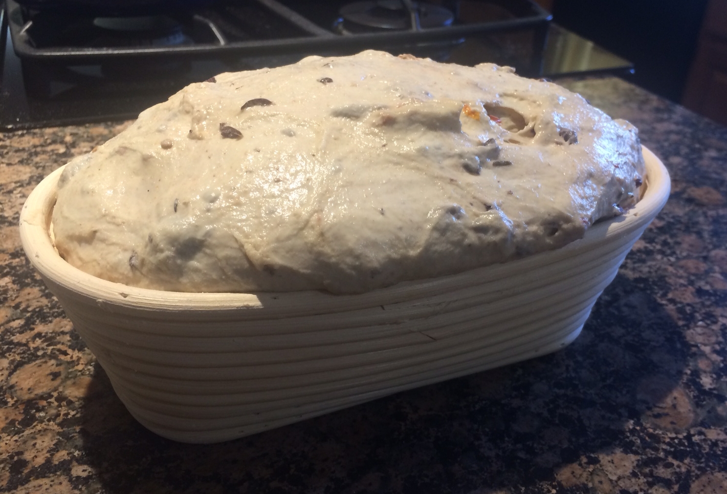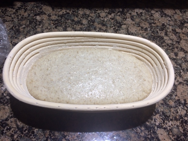 Added 120 g starter, rose above bannaton, was very soft and flattened out Did not add salt, tasted bland