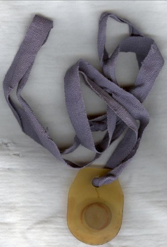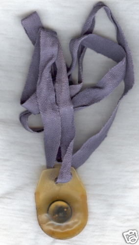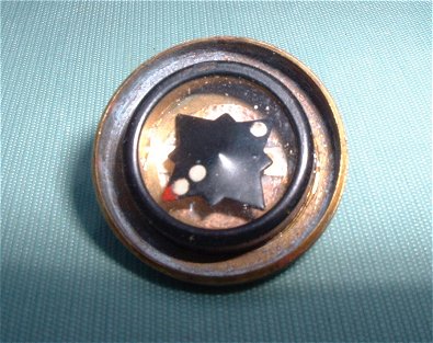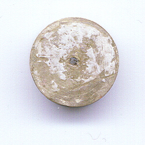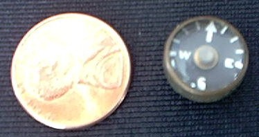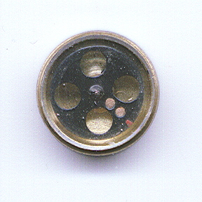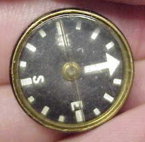 This 'escape compass' button is believed to have been from the World War II era. These buttons were sewn as a pair into the uniform of a soldier. One part has a small sharp pin point (easily hidden within the uniform garment) which is used to balance the other button which had two magnetic elements (the dots). The two dots on the compass button freely point North. When this pair of buttons was sewn into a soldier uniform, there would have been no distinguishing marks to betray the secret of its value.