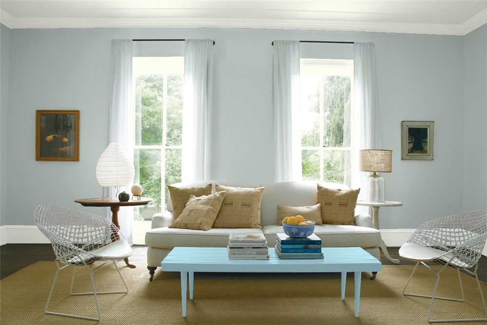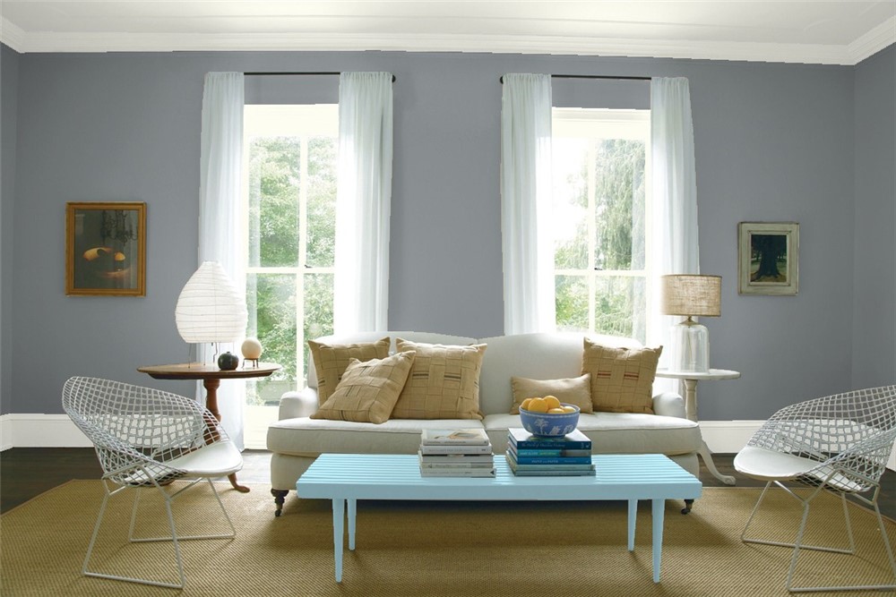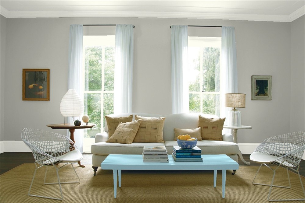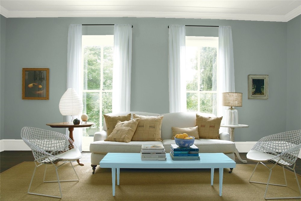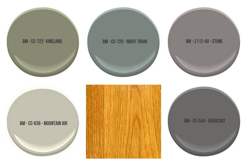 Classic Grey BM Edgecomb Gray BM Gentle Cream SW Silverplate BM Collingwood BM Gray Cashmere If you love Gray and would like to use it in your kitchen, Sherwin Williams Oyster Bay is a great choice. Benjamin Moore's Pleasant Valley is one of my go to colors when working with golden cabinetry. This kitchen with Amber toned cabinets and stainless appliances looks fresh and updated with the addition of blue -gray walls.